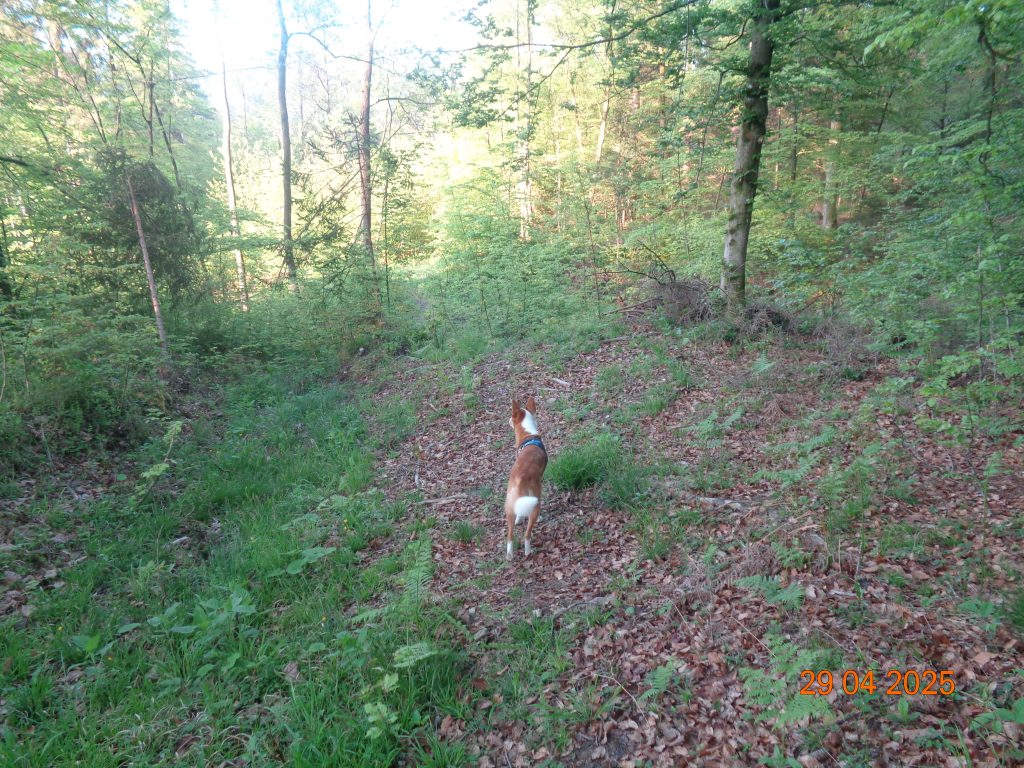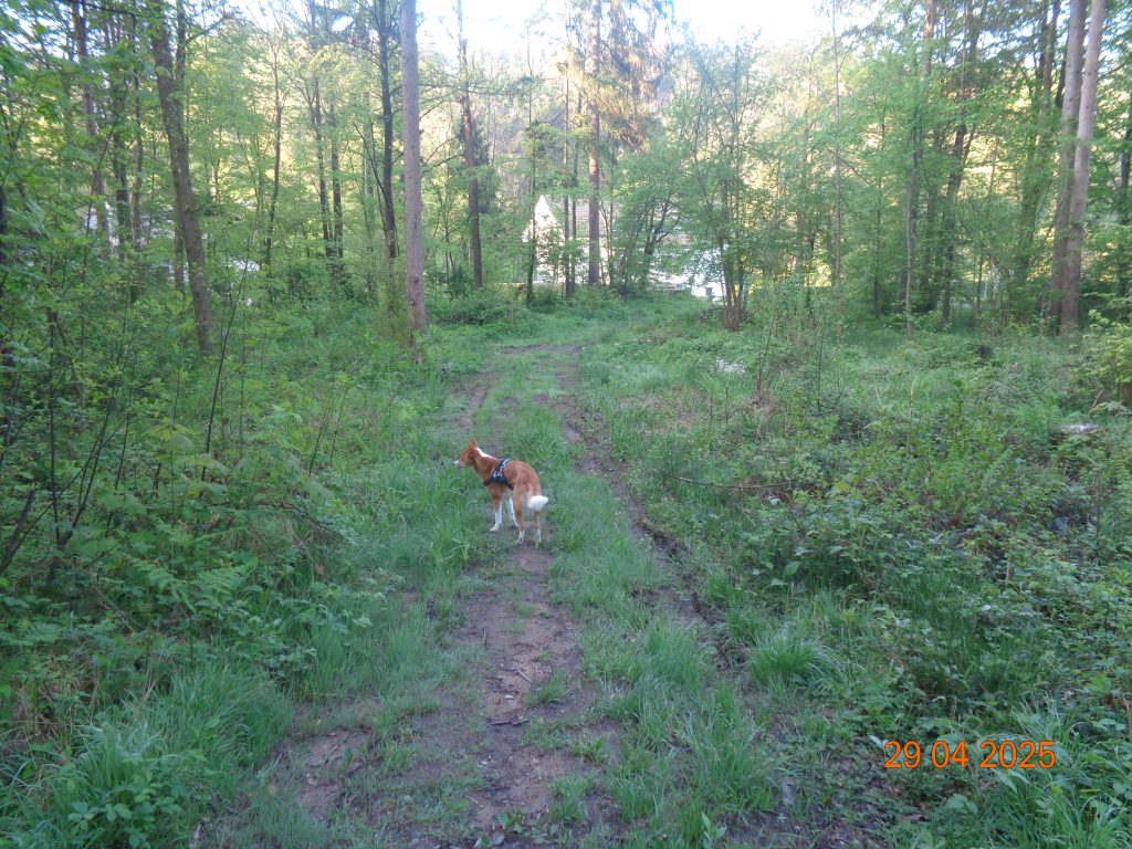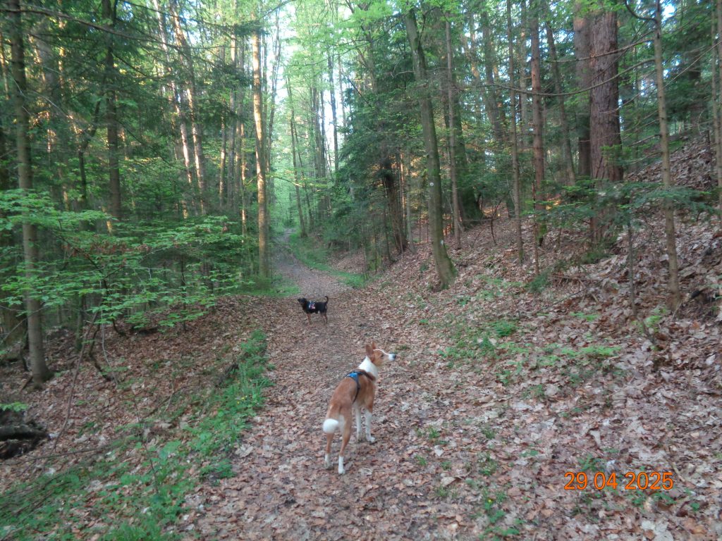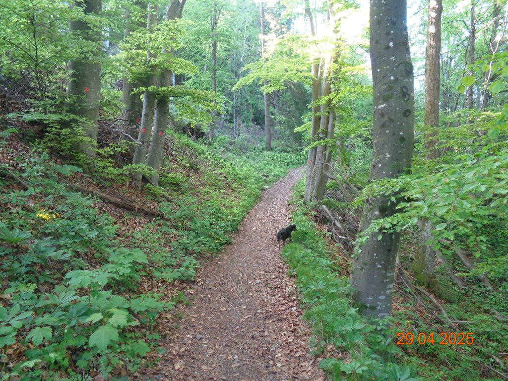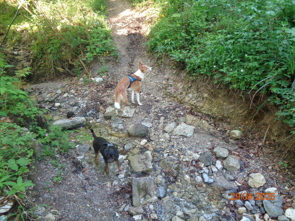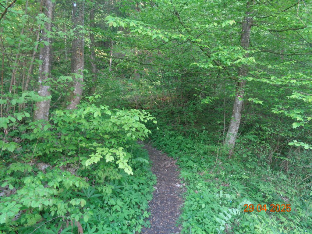 Po nekaj 10 korakih smo zapustile omenjeni kolovoz in nadaljevale desno v gozd, kjer smo se najprej spustile do potočka in ga tudi prečile.
