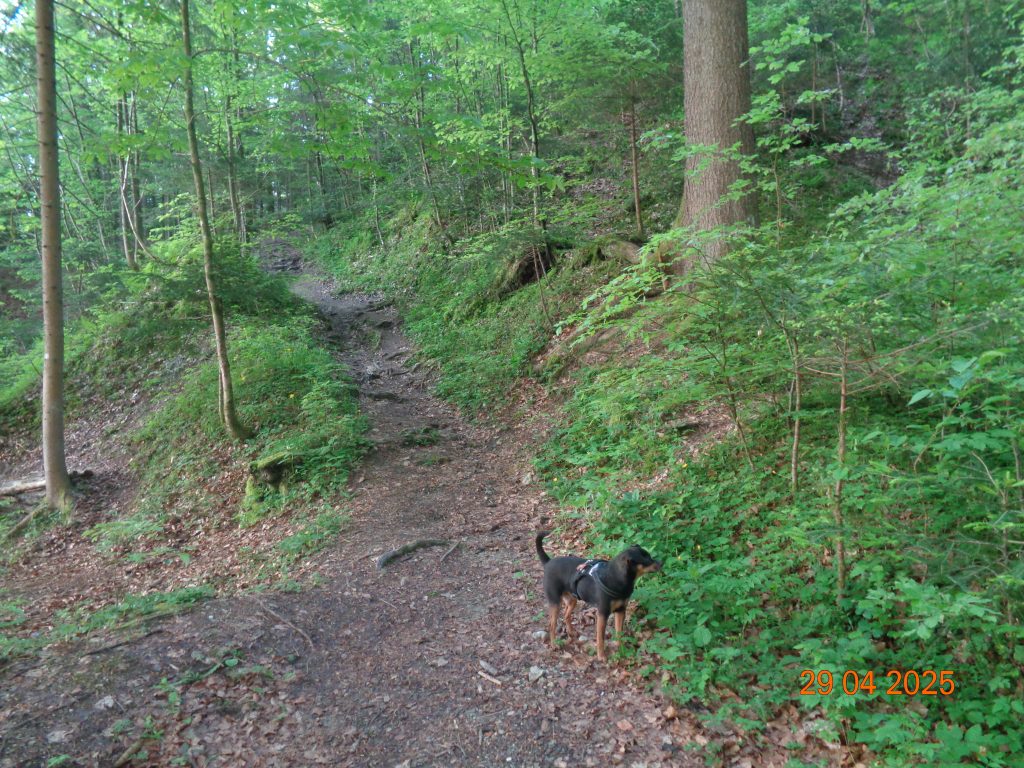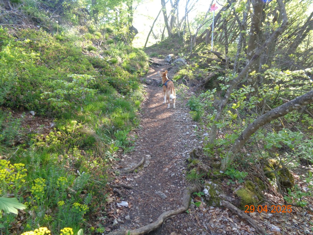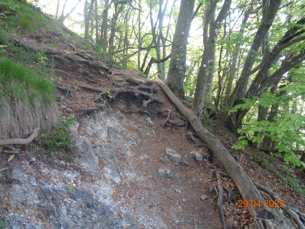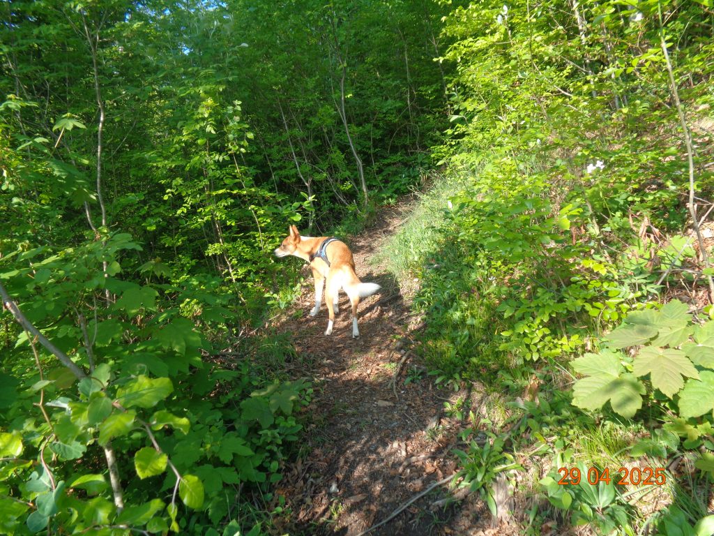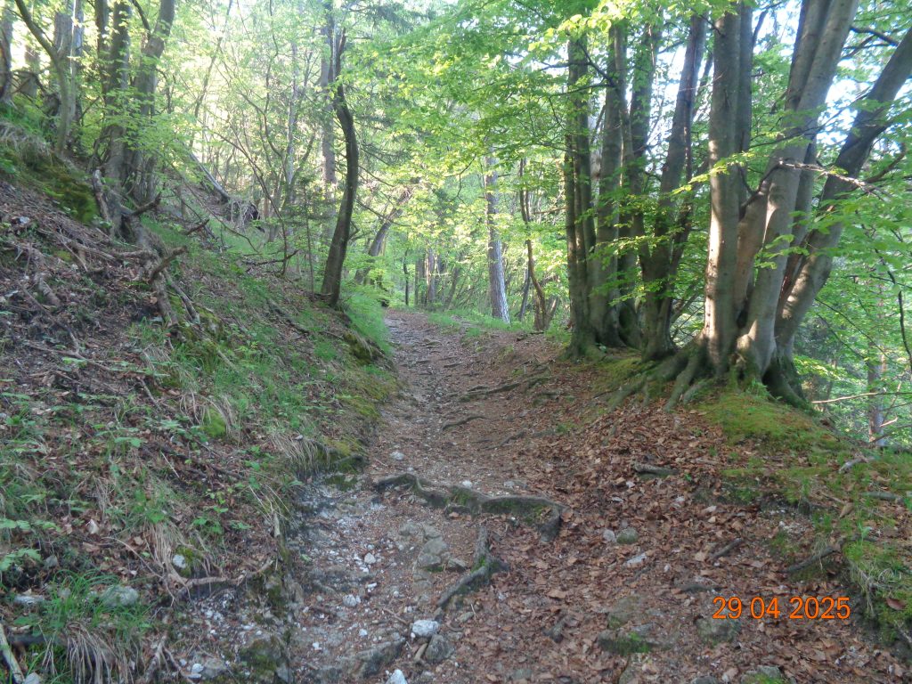 V nadaljevanju smo se zložno vzpenjale po občasno zaraščeni poti, katera nas je vodila mimo več manjših razpotij, kjer smo sledile markacijam.