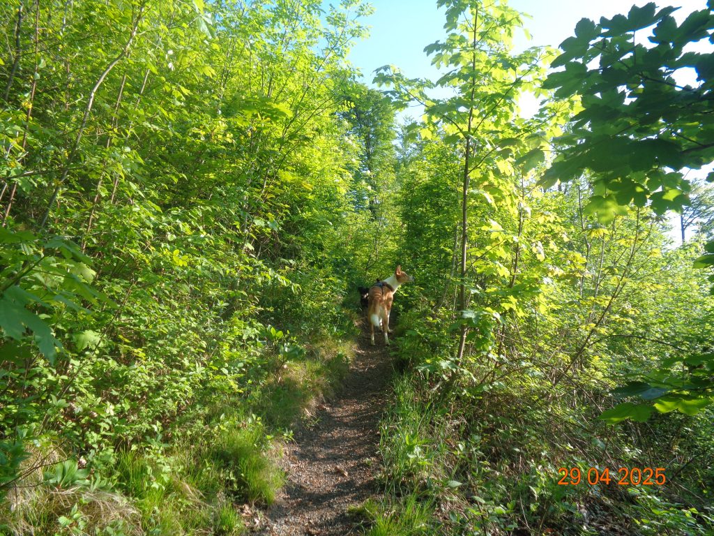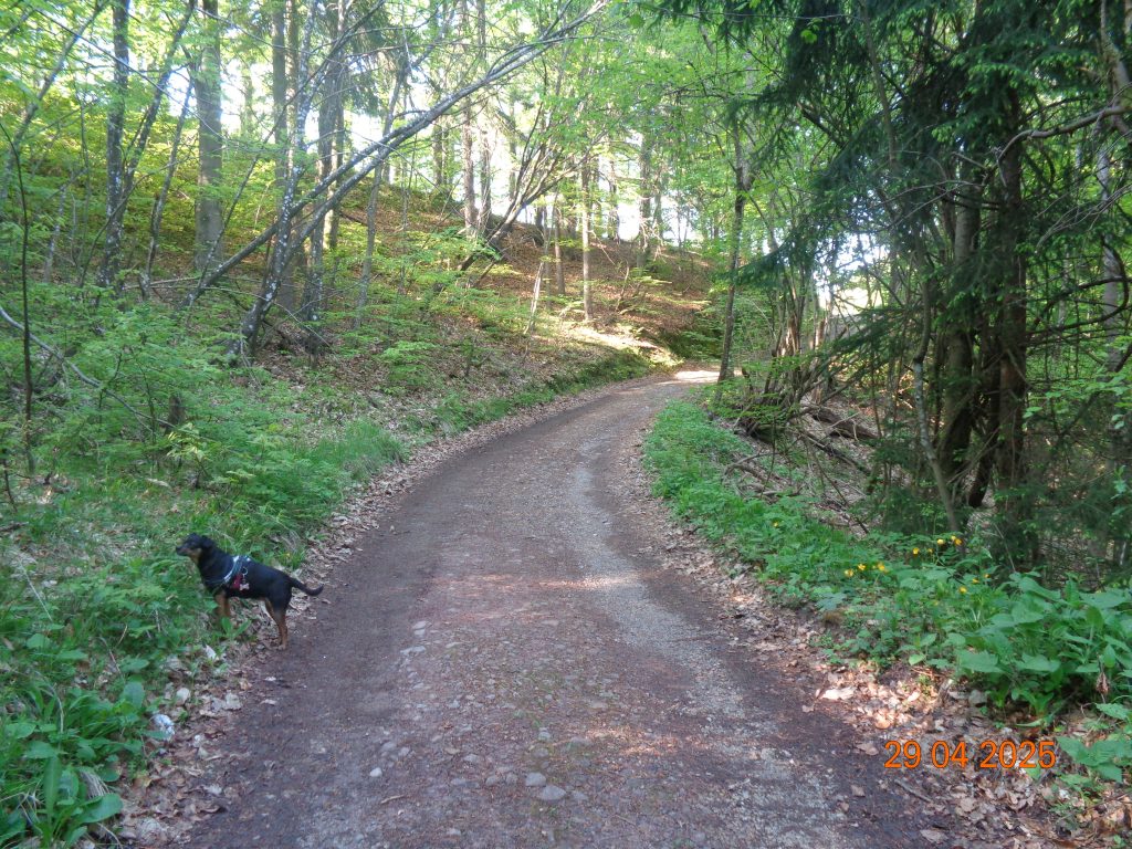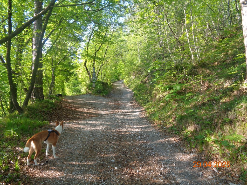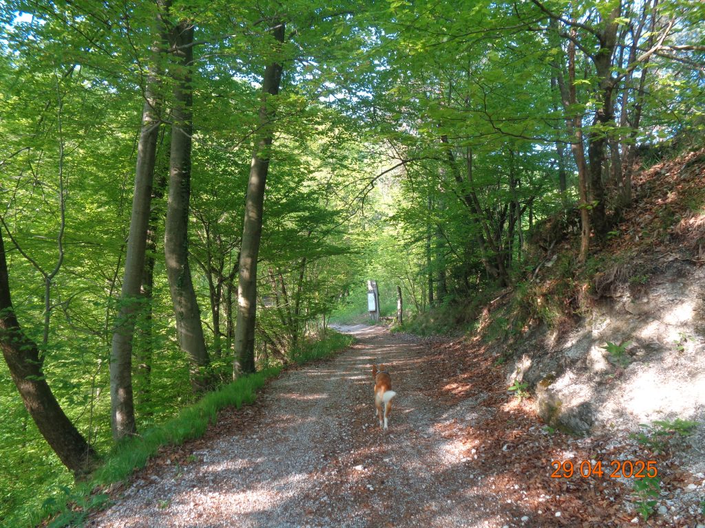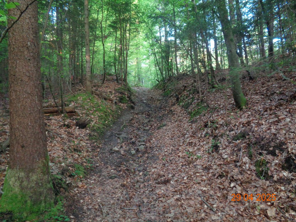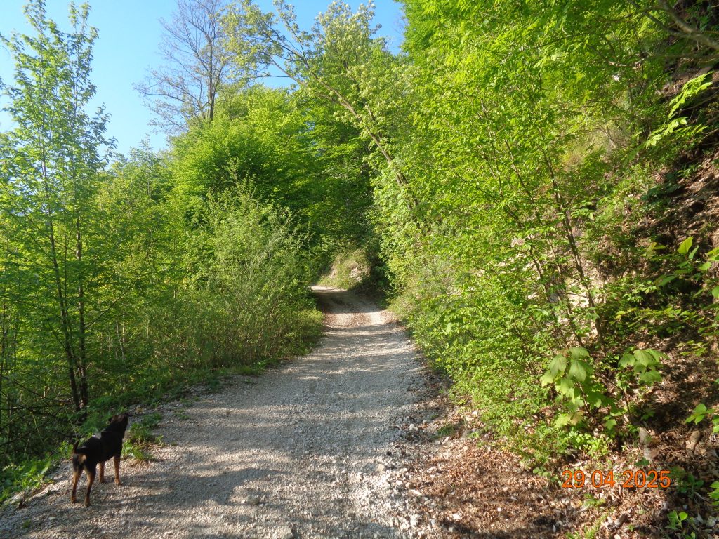Po nekaj minutah zložnega vzpona smo prišle do gozdne ceste, katero smo le prečile. Zaradi gozdnih del je bila razrita in je bila zaradi tega težko sledljiva.