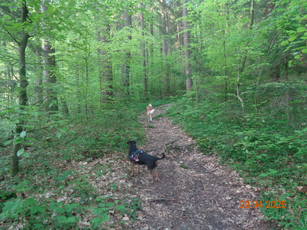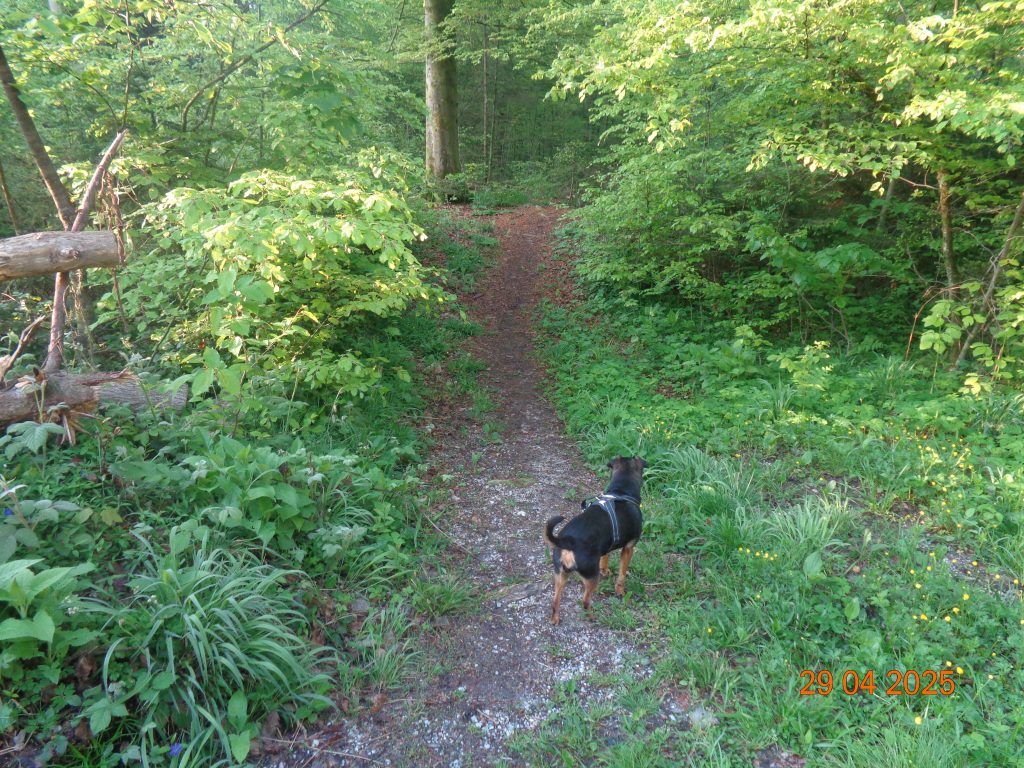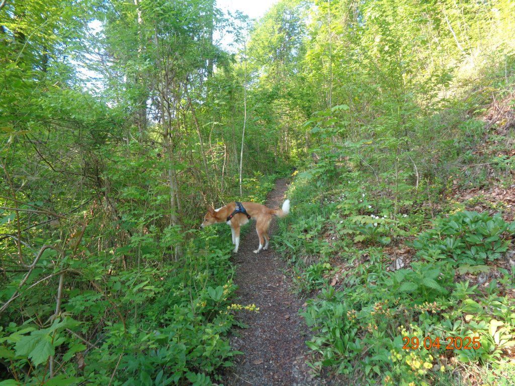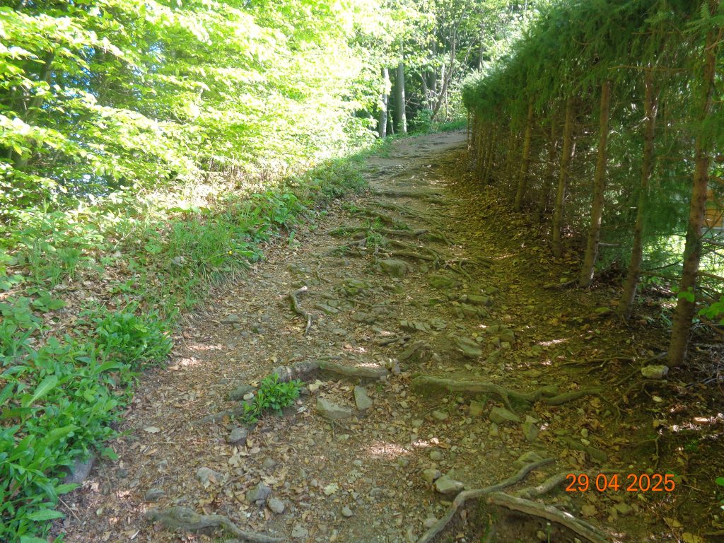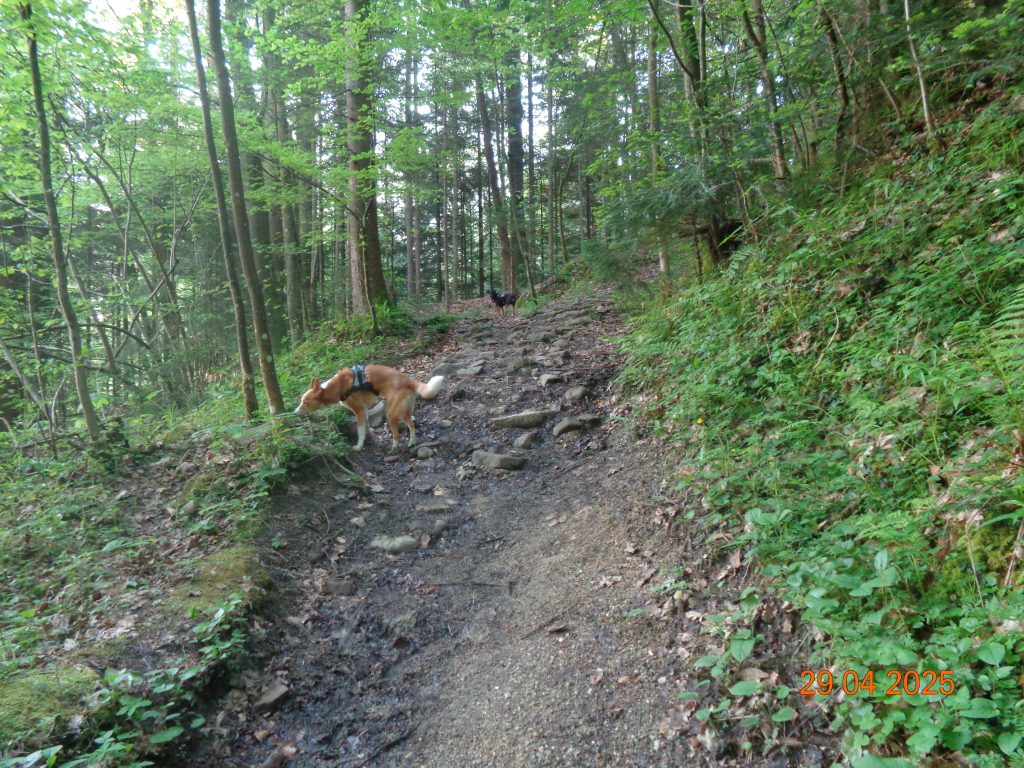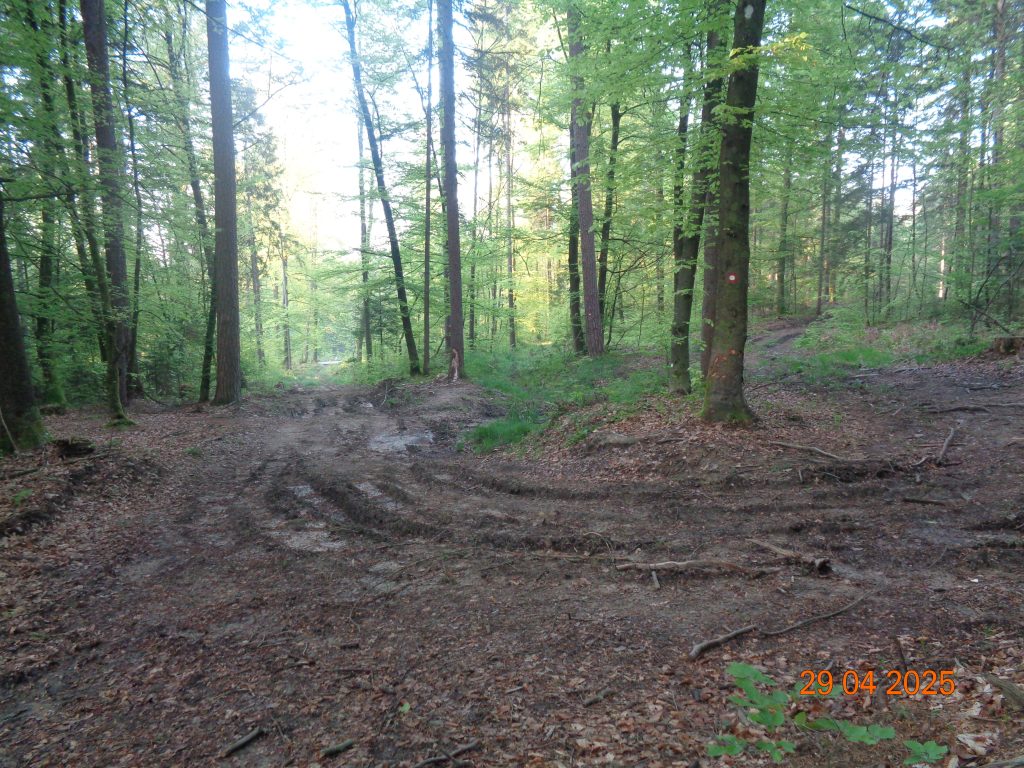 Po nekaj minutah zložnega vzpona smo prišle do gozdne ceste, katero smo le prečile. Zaradi gozdnih del je bila razrita in je bila zaradi tega težko sledljiva.