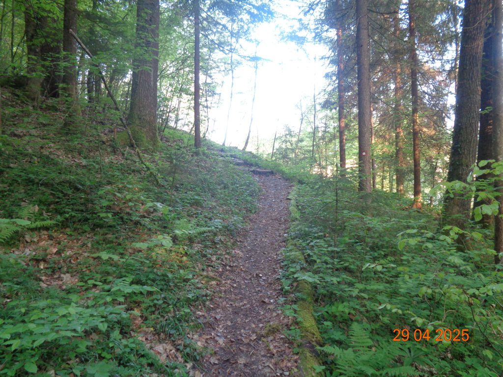 Strma pot, na kateri je bilo tudi nekaj stopnic, se je vzpela skozi gozd.