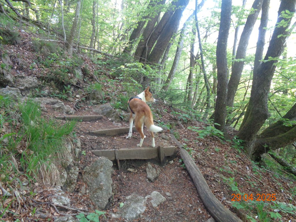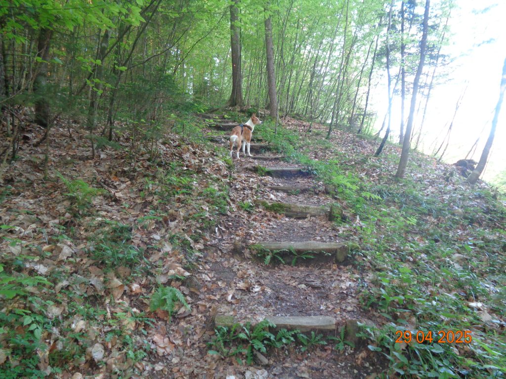 V gozdu smo najprej nadaljevale desno, kjer je bilo tudi nekaj stopnic.