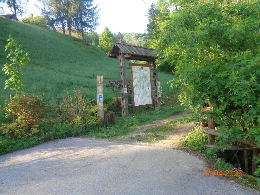 Na koncu parkirišča se nahaja označeno razpotje, kjer smo šle desno v smeri Jeterbenka in Katarine.