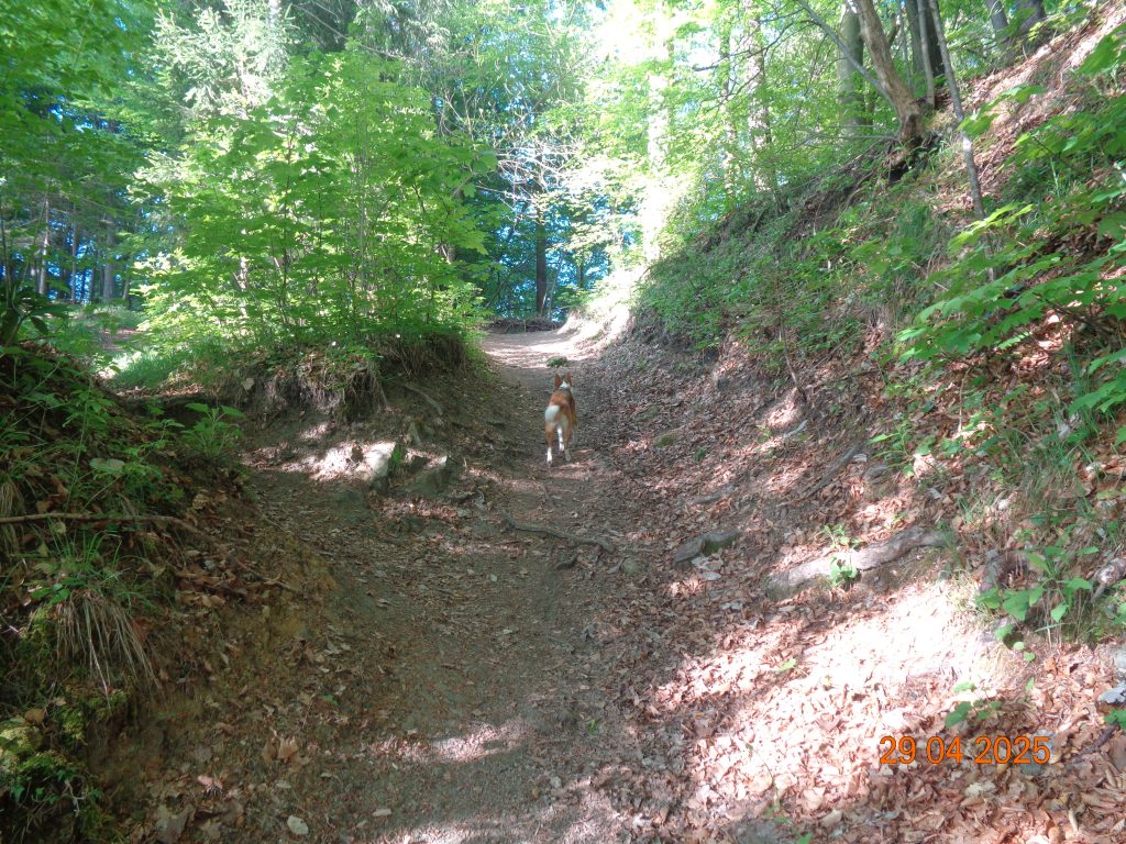 Nato se je pot vrnila v gozd in nas pripeljala do razpotja pri kapelici.