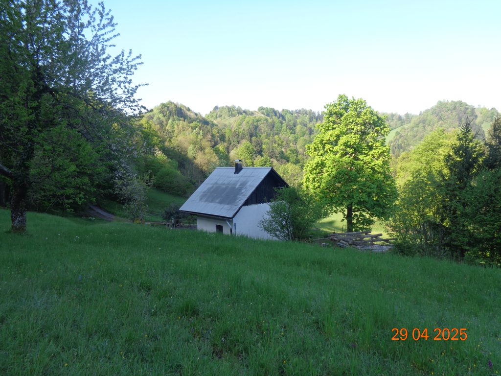 Pot naprej nas je vodila po omenjenem kolovozu. Sprva smo šle mimo hiše, nato pa ob lepih pogledih na Polhograjsko hribovje.