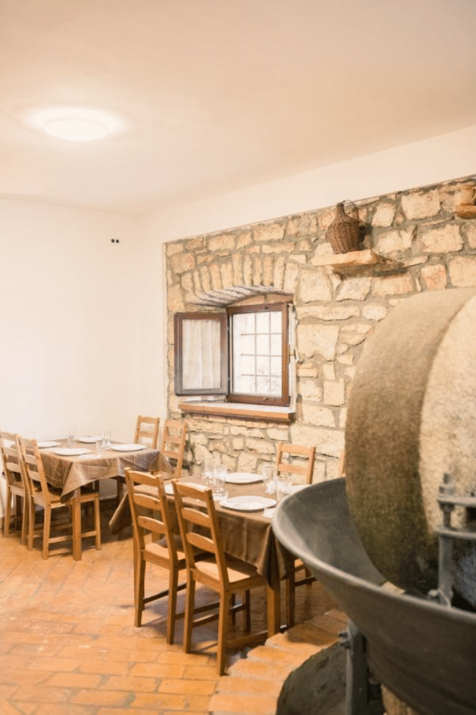 Nahaja se v stavbi nekdanje oljarne iz 19. stoletja, ki je bila v lasti plemiške družine De Franceschi. Zgradba je danes zaščiten kulturni spomenik, kar ji daje poseben čar in avtentičnost. Vsaka soba je poimenovana po članu družine, kar doda edinstveno zgodbo vašemu bivanju.