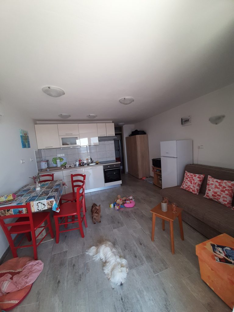 Vsak apartma ima lasten vhod. Ponuja razgled na morje in vrt. V notranjosti boste našli popolnoma opremljeno kuhinjo s kuhalno ploščo, pečico, hladilnikom, kuhinjsko posodo in čistilnimi sredstvi, jedilno mizo. Zunaj pa je na voljo tudi zunanji jedilni predel z vrtno garnituro.