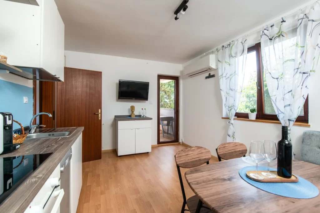 Trije apartmaji, ki so na voljo za najem skozi vse leto v Medulinu. Če iščete dopust na mirni lokaciji, a hkrati blizu vseh dogodkov v Medulinu, potem ste na pravem mestu. Casa Meazza vam lahko pričara dopust točno takšen, kot si ga želite. V posamičnem apartmaju je dovoljen samo en pes. Za iztrebke so pripravljene biorazgradljive Eko vrečke.