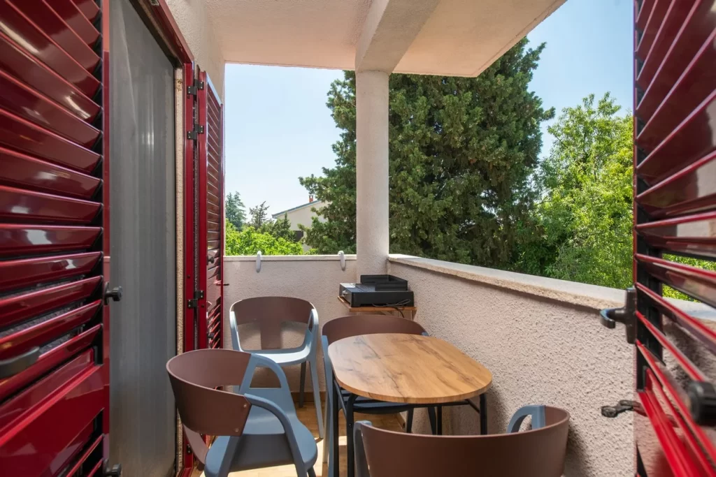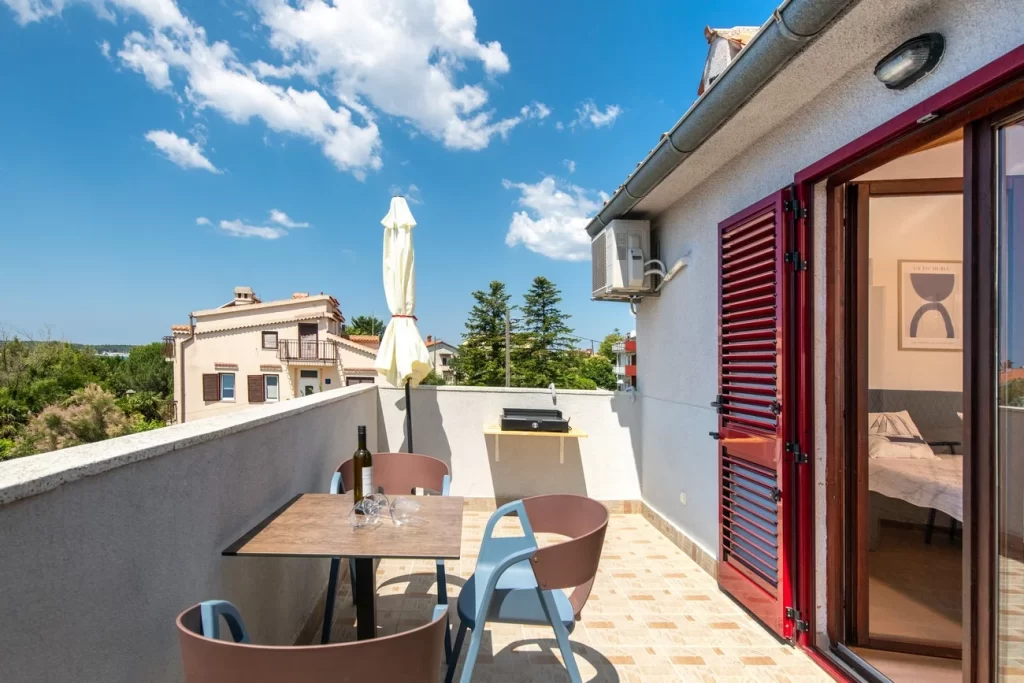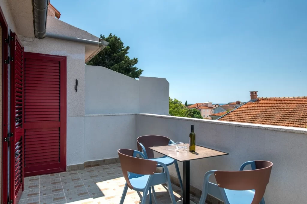 Apartma Rosso se nahaja v drugem nadstropju hiše in nudi vse, kar potrebujete za prijeten oddih v Medulinu. Ima eno spalnico, kopalnico in popolnoma opremljeno mini kuhinjo z mikrovalovno pečico, aparatom za kavo in drugimi kuhinjskimi pripomočki. Največja prednost apartmaja je prostorna terasa z žarom in pogledom na morje. Apartma je opremljen s klimatsko napravo, LCD televizijo in brezplačnim Wi-Fi-jem. V kuhinji se nahaja hladilnik z zamrzovalnikom, pečica, štedilnik, grelnik za vodo, mešalnik, toaster ter visok stolček za otroke.