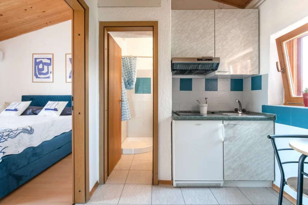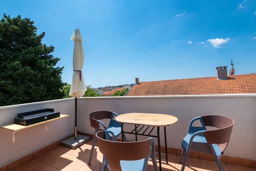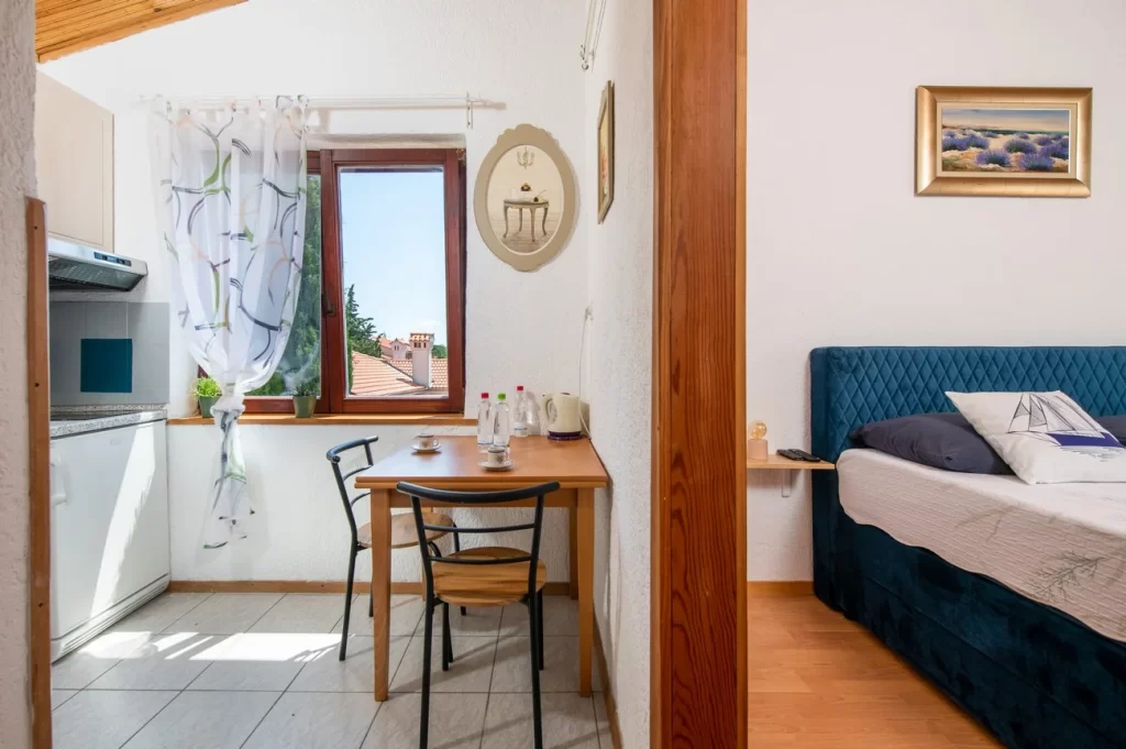 Nahajajo se v mirni ulici, le nekaj minut hoje od sprehajališča, restavracij, trgovin in plaže v Medulinu. Na voljo so trije popolnoma opremljeni apartmaji. Eden je primeren za štiri osebe, dva pa za po dve osebi. Vsak apartma ima svojo teraso – večji apartma je v prvem nadstropju hiše, studii pa v drugem nadstropju, od koder se s teras odpira pogled na morje.