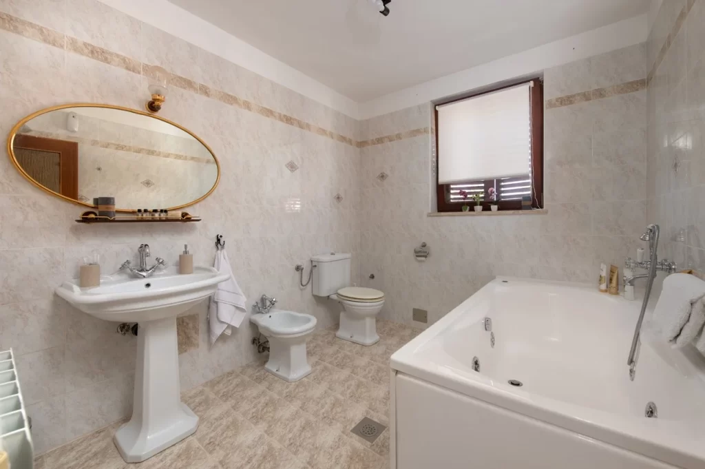 Apartma Bianco se nahaja v prvem nadstropju hiše. Ponuja dve spalnici, kopalnico in opremljeno mini kuhinjo z vsemi potrebnimi pripomočki za pripravo obrokov, vključno z mikrovalovno pečico in aparatom za kavo. Sprostite se lahko na terasi, kjer vas bo razveselil pogled na zeleno urejen vrt. Apartma je opremljen s hidromasažno kadjo za popolno sprostitev, klimatsko napravo, LCD televizijo in brezplačnim Wi-Fi-jem. Kuhinja vsebuje hladilnik z zamrzovalnikom, pomivalni stroj, mešalnik, toaster, kuhalnik za vodo, štedilnik, pečico ter visok stolček za otroke.