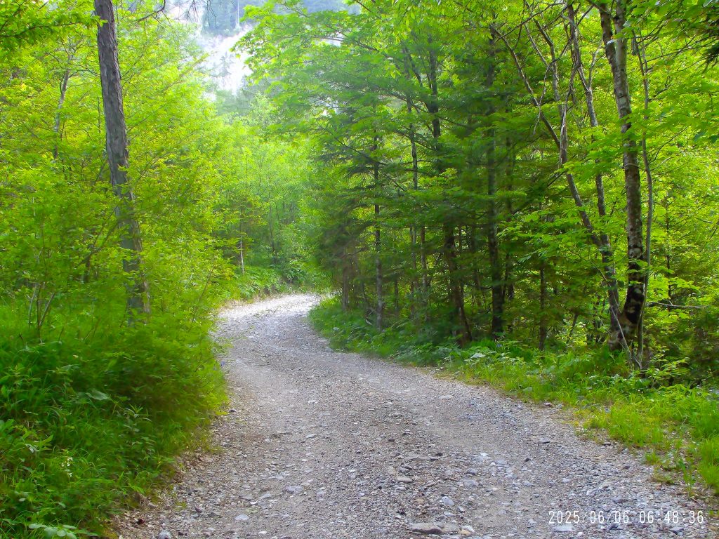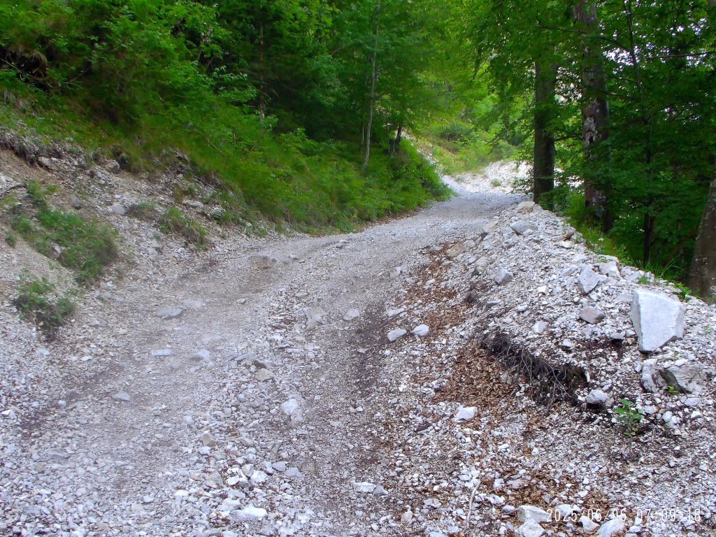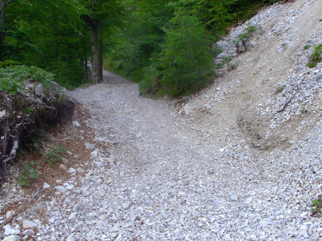 S parkirišča smo šle po gozdni cesti, ki je višje prečila hudournik.