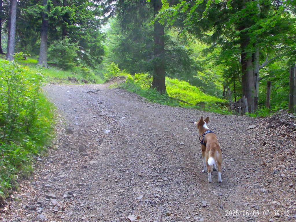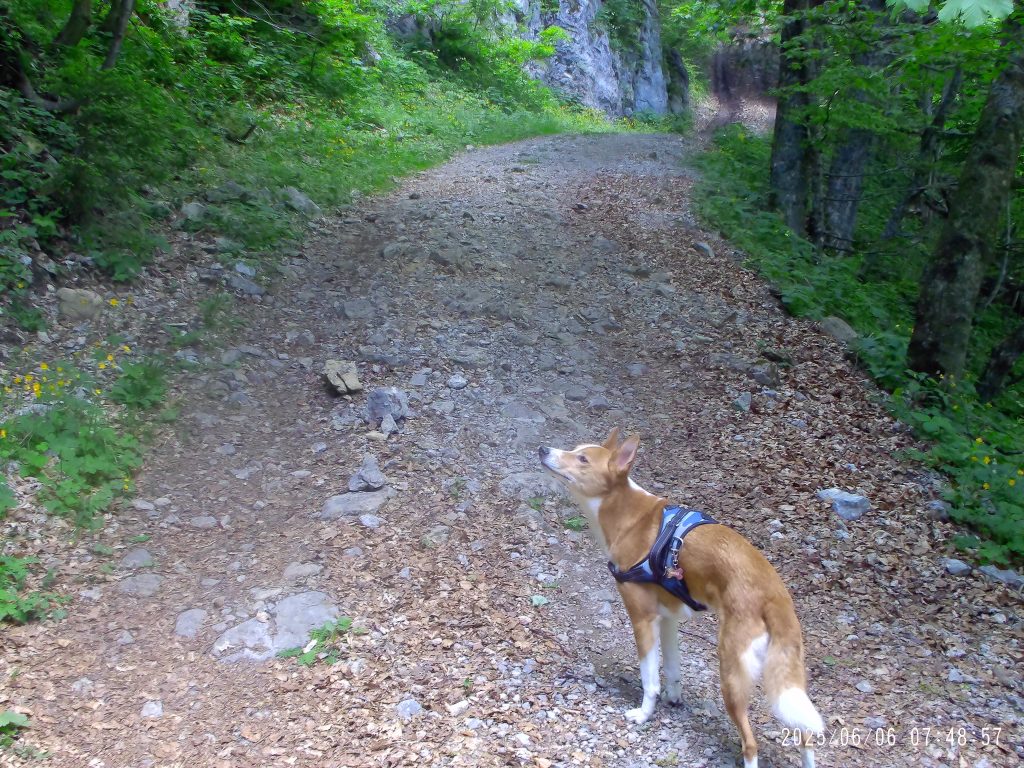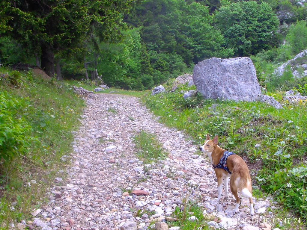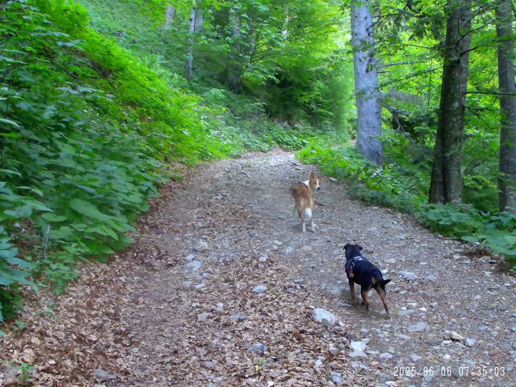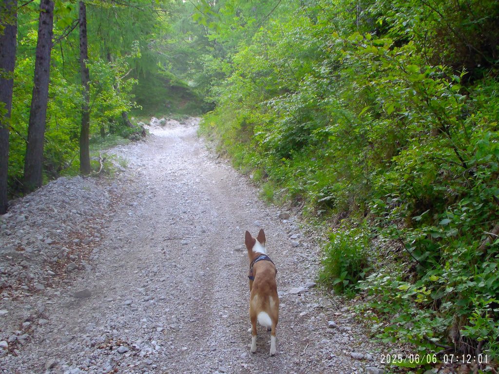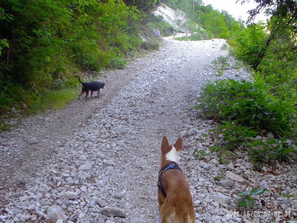 Pot nas je pripeljala na večjo jaso, kjer je bil tudi potok, da sta se Gaja in Kana odžejali.
