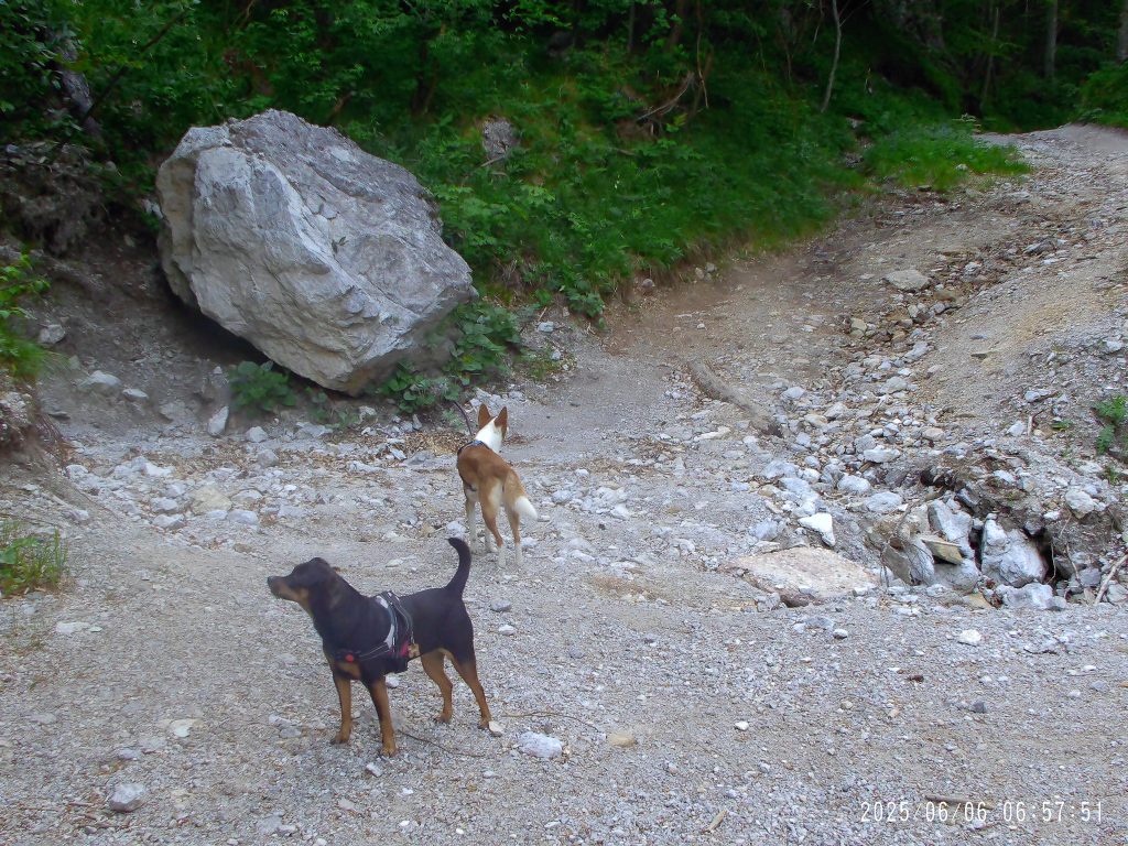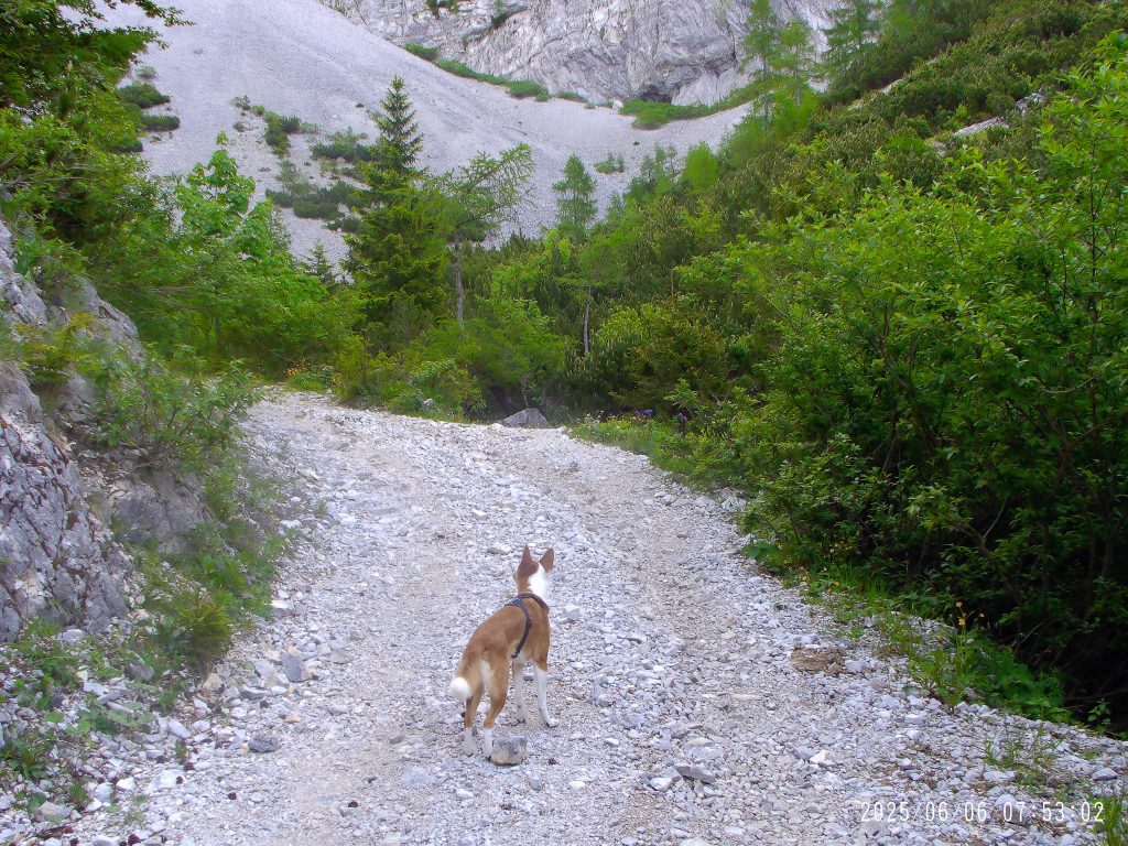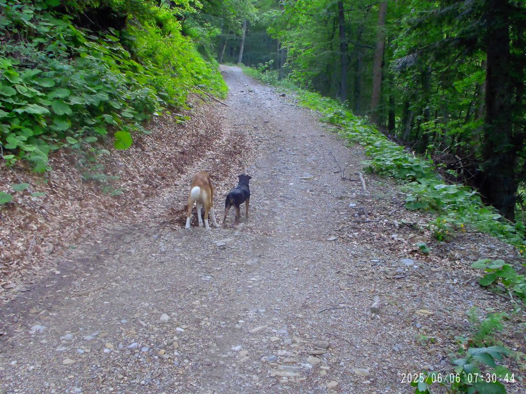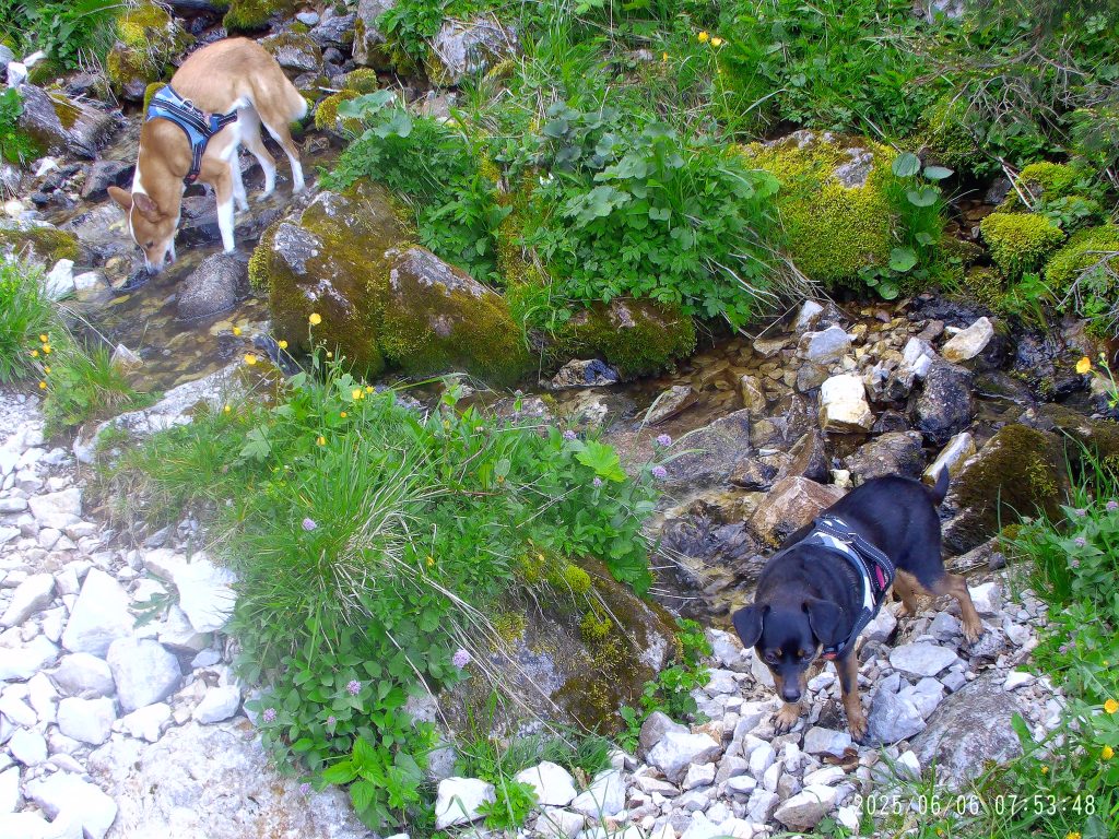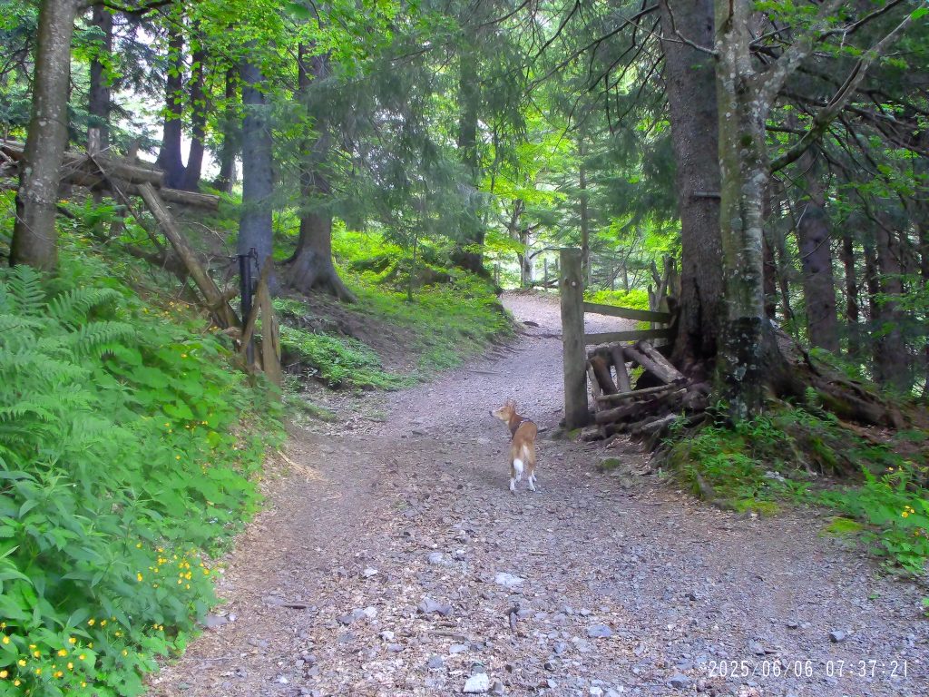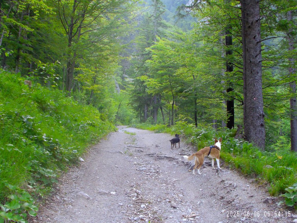 Pot nas je pripeljala na večjo jaso, kjer je bil tudi potok, da sta se Gaja in Kana odžejali.