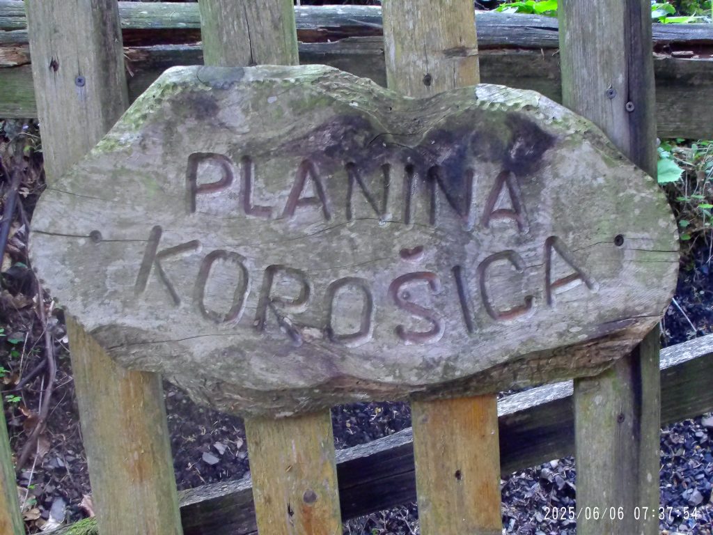 Prišle smo do ograje s tablo Planina Korošica, ki je bila tokrat odprta.