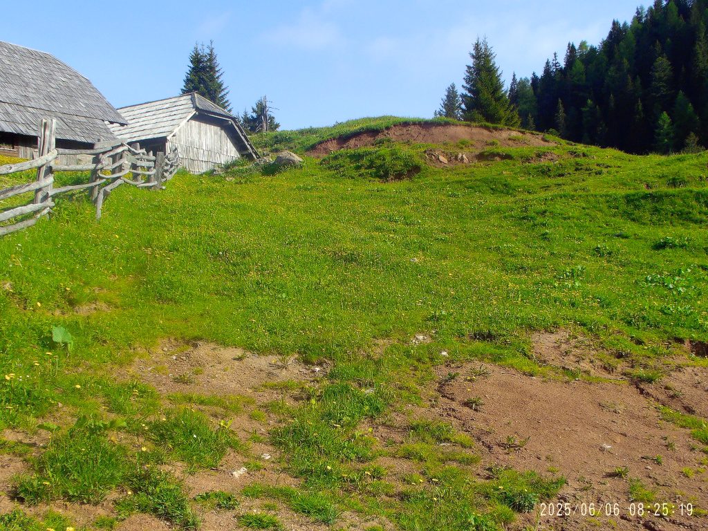 Pot se je nato obrnila v levo in nas v nekaj korakih vzpona pripeljala do koče na planini Korošica.