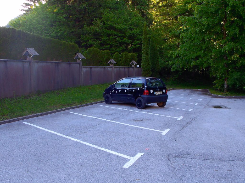Parkirala sem na urejenem parkirišču ob pokopališču pri cerkvi sv. Ožbolta na Zgornjem Jezerskem.