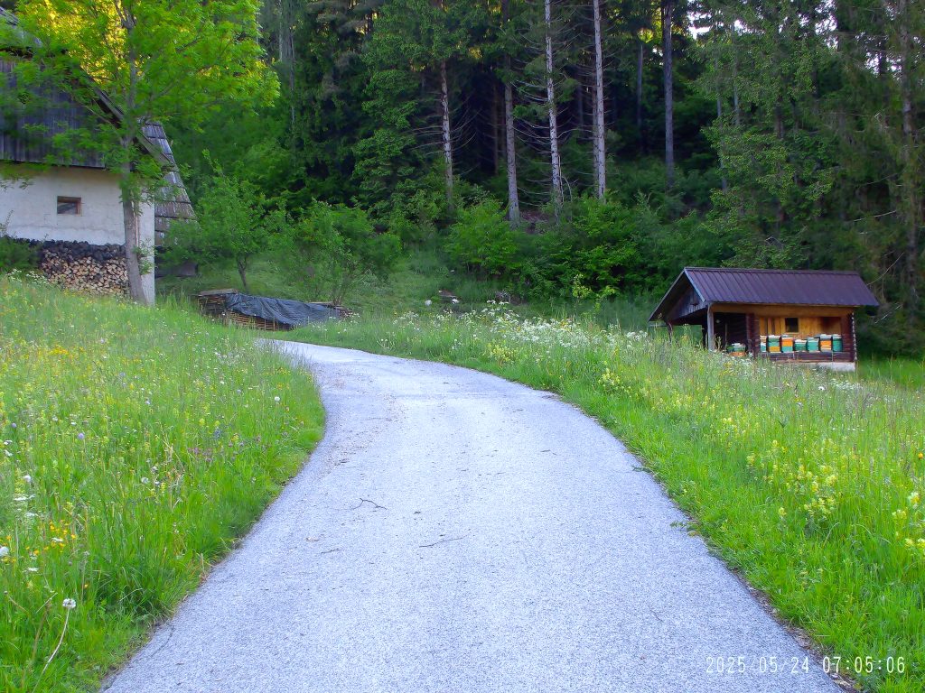 Prišle smo do makadamske ceste, po kateri smo nekaj časa hodile. Le ta se je zmerno vzpenjala.