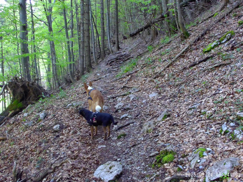 Markacija nas je usmerila desno na gozdno pot, ki se je začela strmo vzpenjati.
