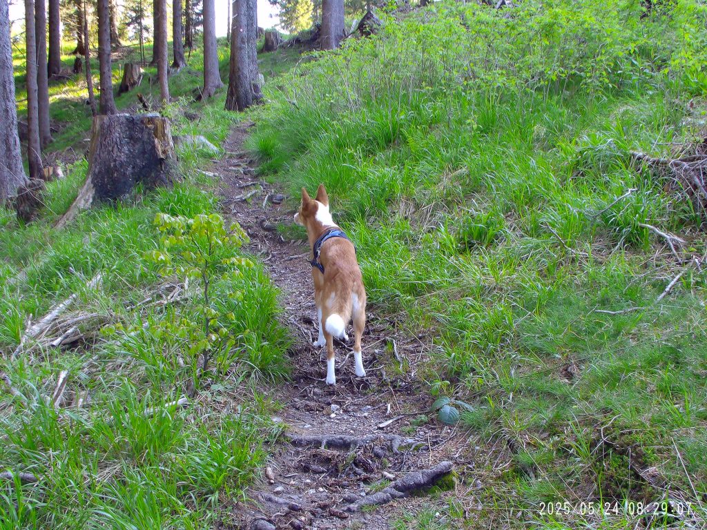 Pot je v zmernem vzponu spet potekala po gozdu.