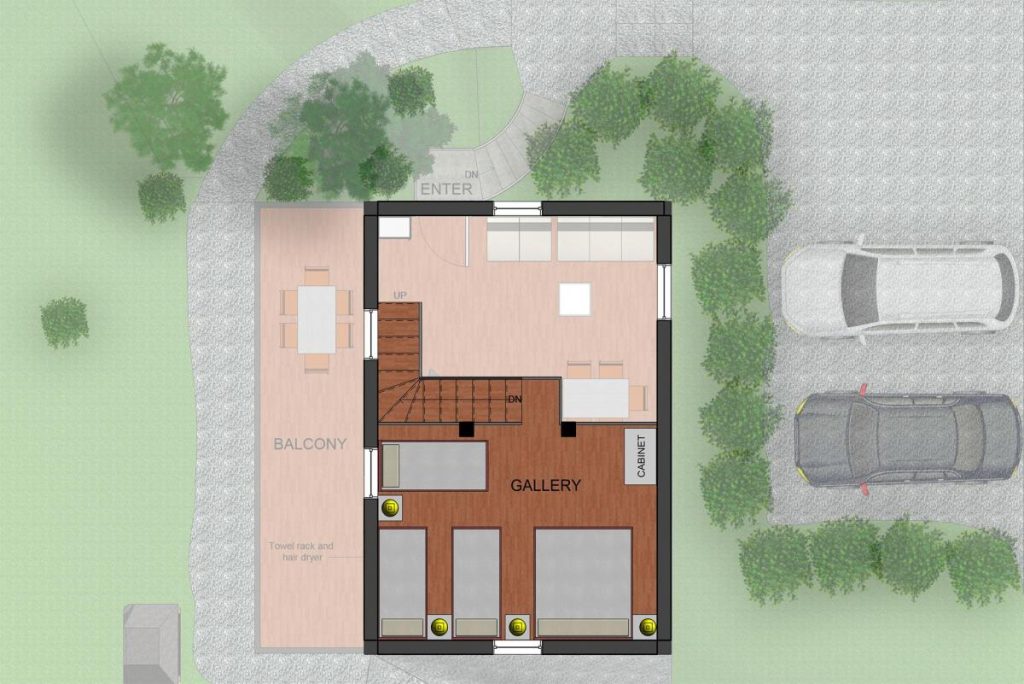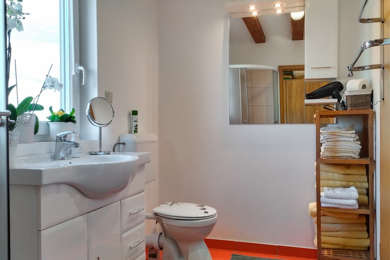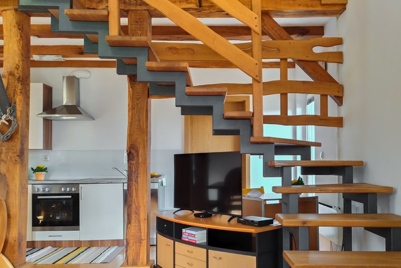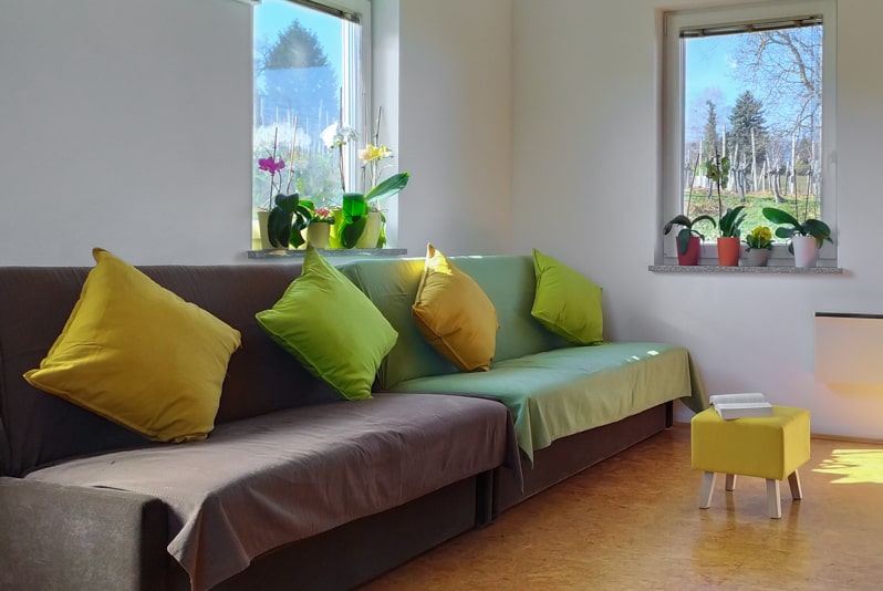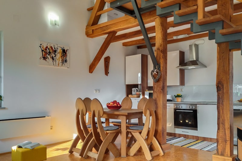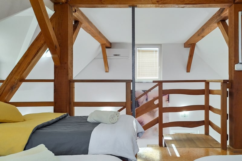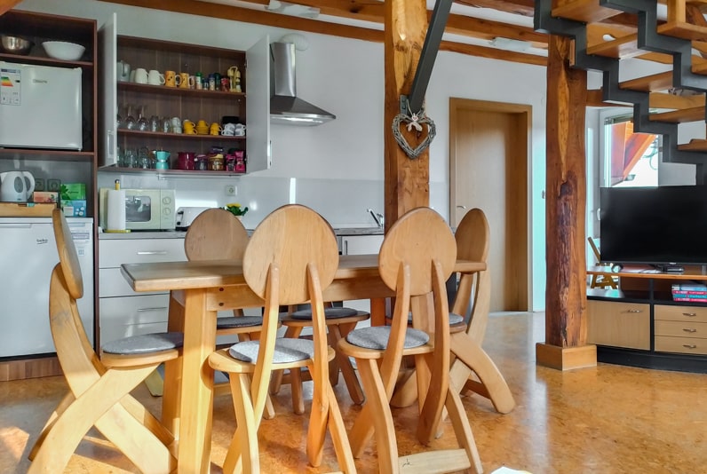 Duplex Galerija z balkonom je družinski apartma za do sedem gostov in otroška posteljica, če je potrebno. Čudovit razgled na okoliške travnike, vinograde in razgibano naravo.