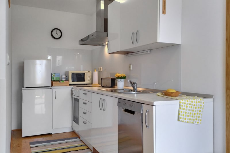 Apartma ponuja zakonsko posteljo, tri enojne postelje ter raztegljiv trosed in raztegljiv dvosed, zato je primeren tudi za večje skupine. Popolnoma opremljena kuhinja vključuje pomivalni stroj, v jedilnici pa je na voljo hladilnik z zamrzovalnikom. Kopalnica je opremljena s tušem. Gostom je na voljo garderobni prostor z omaro in pralno–sušilnim strojem. Apartma je klimatiziran in ogrevan, za zabavo pa poskrbita pametni TV in Netflix. Dostop do hitrega Wi-Fi omrežja je brezplačen. Na vrtu je urejen zasebni prostor za žar z mizo in klopmi ter odprto kurišče.