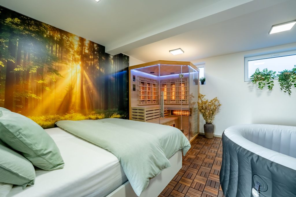 Poseben vrhunec hiše je sprostitveni wellness kotiček. Gostom je na voljo savna za globinsko sprostitev ter zunanji jacuzzi, ki se nahaja na intimnem, ograjenem delu dvorišča.