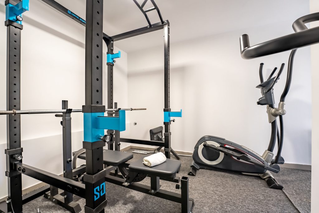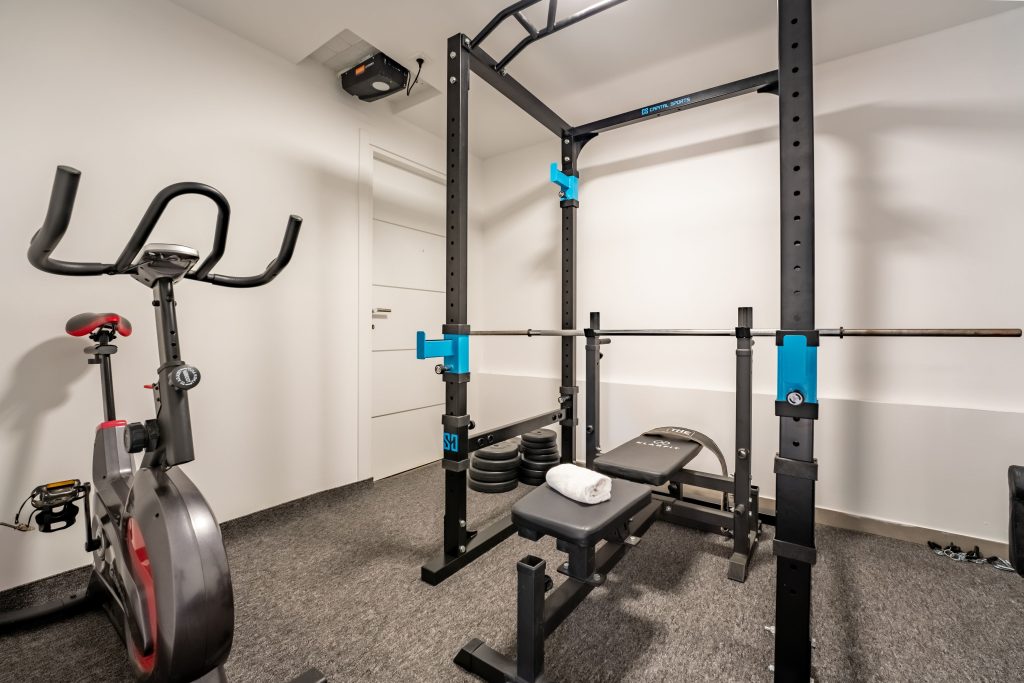 Hiša ponuja še vrsto dodatnih vsebin, ki dvignejo izkušnjo na višjo raven. Gostom je na voljo fitnes prostor, opremljen s profesionalnimi napravami, kot so stenski power rack, sobno kolo, proste uteži in dodatna oprema za vadbo. Idealno za tiste, ki tudi med dopustom radi ostanejo aktivni.
