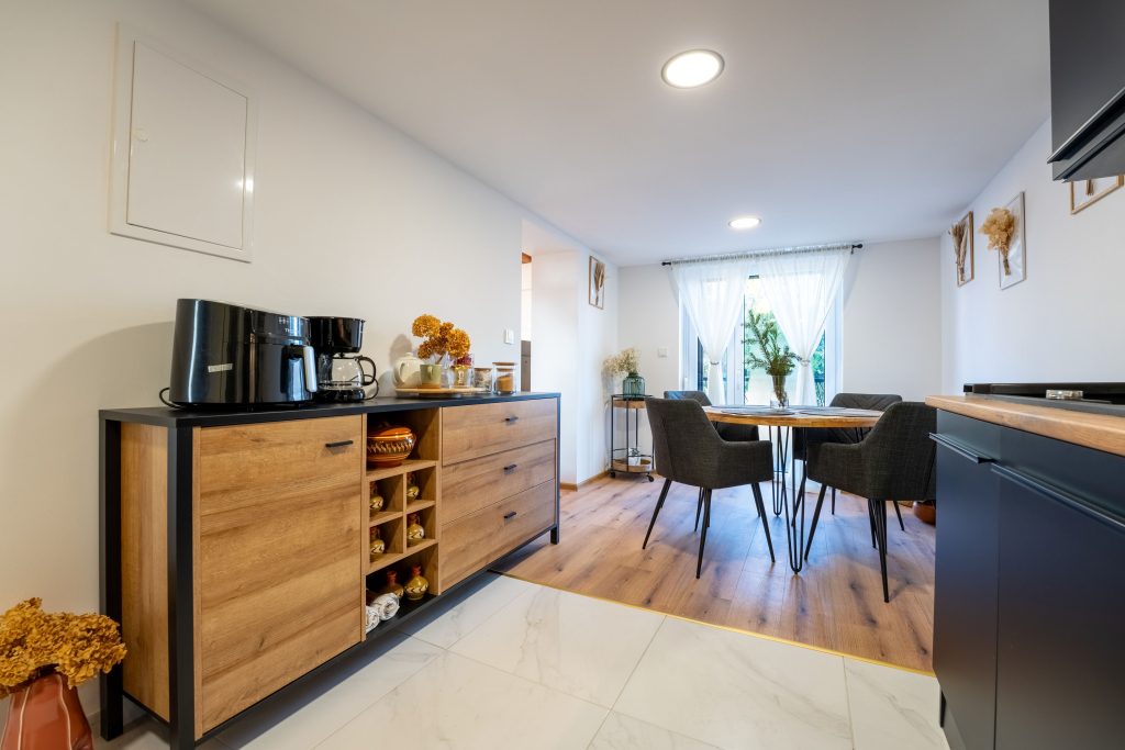 House of TOK je sodobna in obenem toplo zasnovana počitniška hiša, ki svojim gostom ponuja popolno udobje, zasebnost in vrhunsko doživetje v vsakem letnem času. Hiša ima tri prijetne in svetle spalnice, opremljene z udobnimi posteljami, kakovostno posteljnino in detajli, ki poskrbijo za domačnost. Osrednji del hiše je moderna kuhinja, popolnoma opremljena z vsemi potrebnimi aparati — od prostornega hladilnika, indukcijskega štedilnika, pečice, pomivalnega stroja do kakovostnega kuhinjskega pribora. Povezana je z elegantno jedilnico, ki nudi veliko prostora za družinske obroke ali večerne pogovore ob kozarcu vina.